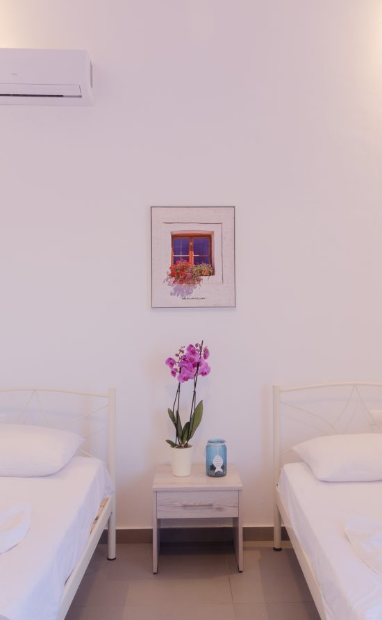 Welcome to your island oasis inspired by the natural beauty and calming energy of Mykonos. Relax on your private terrace or snuggle up in your king size bed and take in the views of Agrari.
